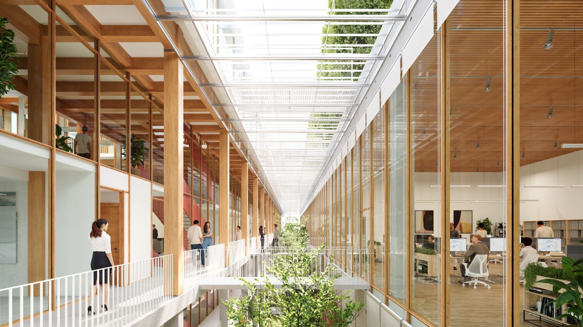 - Des espaces de bureaux et de coworking favorisant la collaboration interdisciplinaire ;