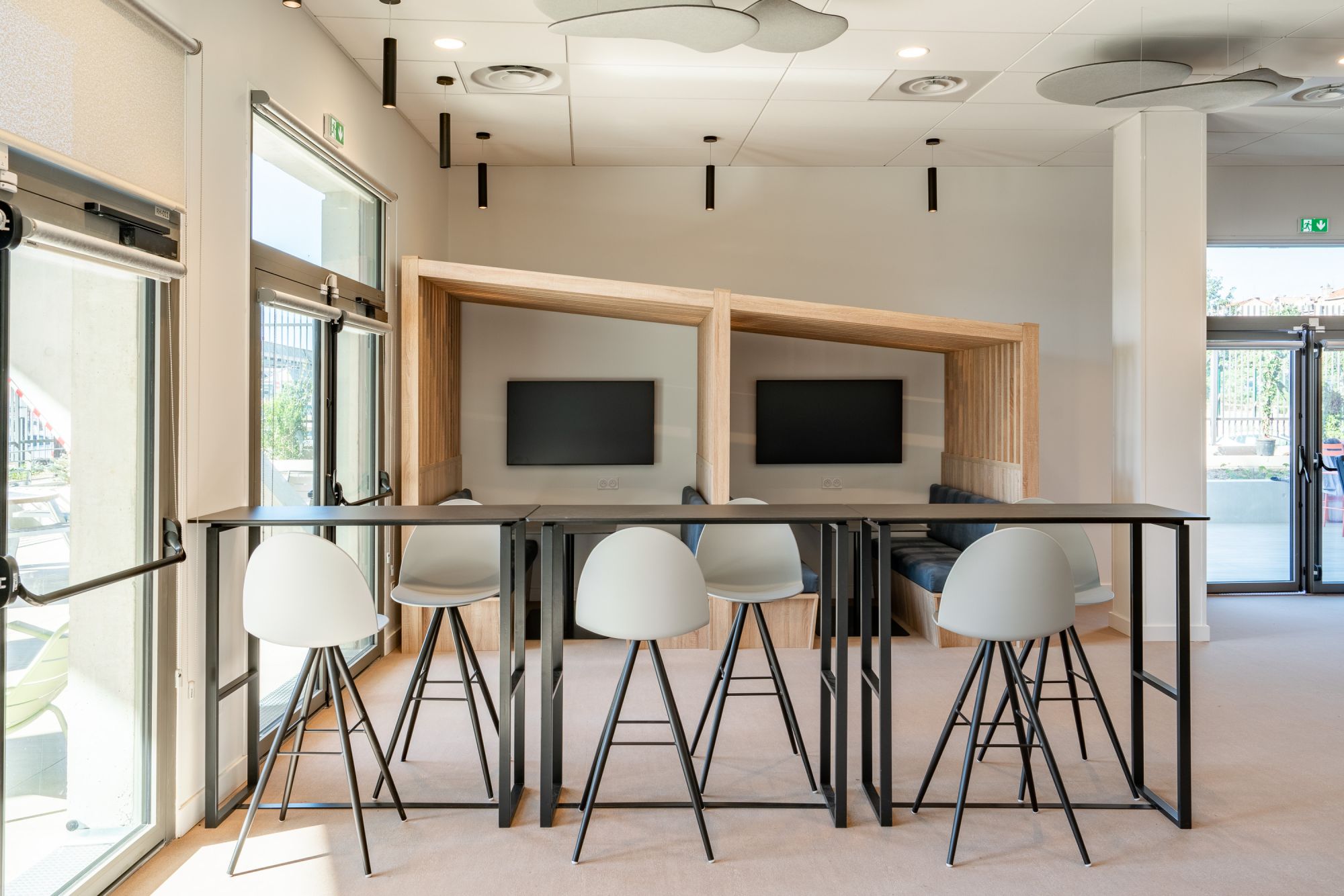 • Des espaces de vie et de communication (hall, restauration d'entreprise, showroom, salle de détente, place du village)