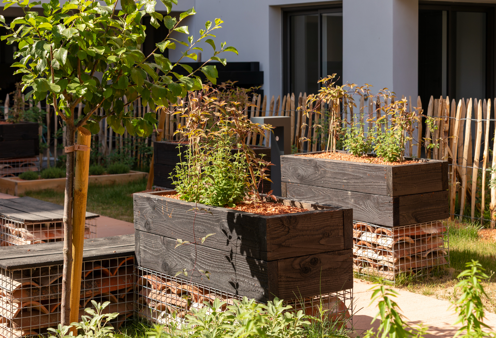 - Plantations d’herbes aromatiques dans des bacs à plantes