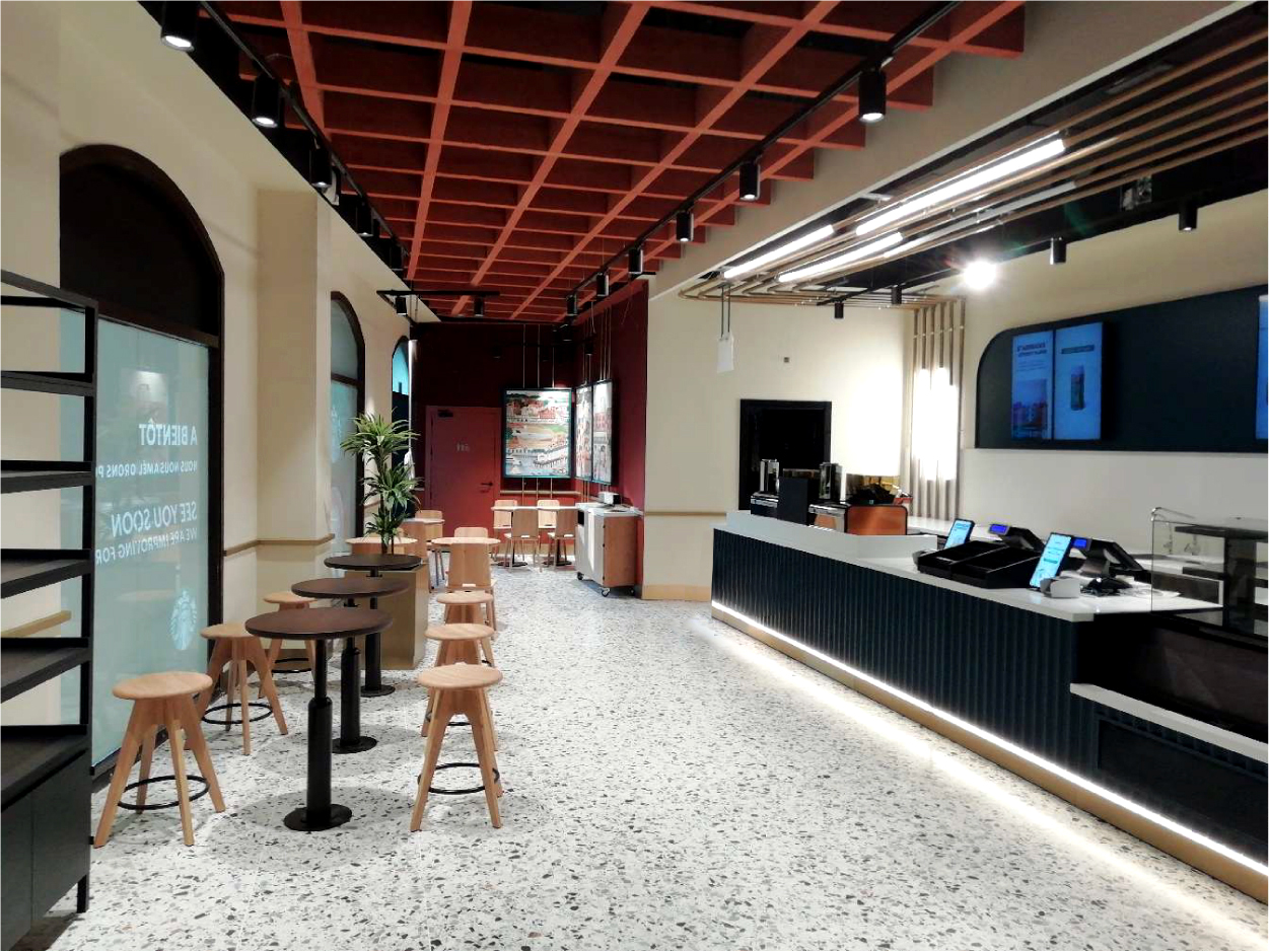 Le projet a été livré dans le respect des délais, permettant une ouverture rapide et efficace. Le nouveau Starbucks est aujourd’hui pleinement opérationnel dans un cadre où l’expérience client, le design et la fonctionnalité se rencontrent.