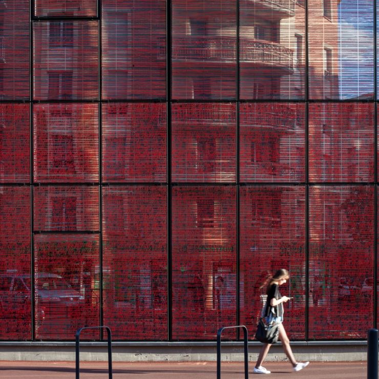 On this site, the volume of the plant is major (300x300m, 35m high). The offices (8,150 m²) are connected to the assembly halls by a walkway with a direct connection to the production halls. The green roof improves thermal performance while the clear glass closer to false ceilings and light-colored ceiling, wall and floor coverings limit the use of artificial light.