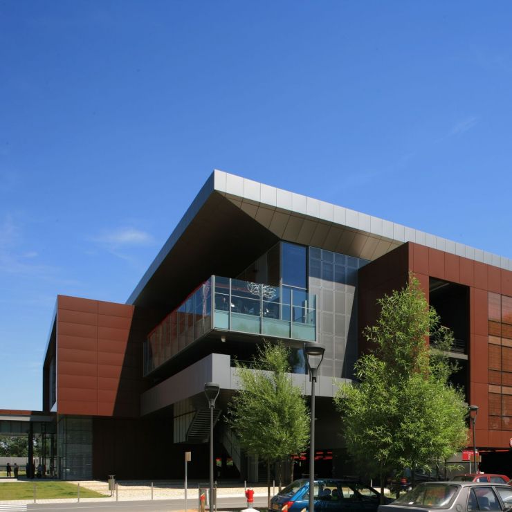 The first image offered to the visitors is that of the skin of the 3 higher levels of the carpark.