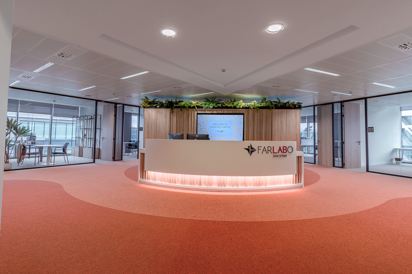 Comercial Farlabo, la distribuidora líder en el sector de cosmética de prestigio, se asoció con Kardham Gabiteco y su equipo de diseño y construcción para llevar a cabo un ambicioso proyecto de transformación en sus oficinas. Estas nuevas instalaciones, ubicadas en el distrito de Hortaleza, Madrid, abarcan 1,425 metros cuadrados y fueron desarrolladas durante los meses de enero hasta mayo de 2023.